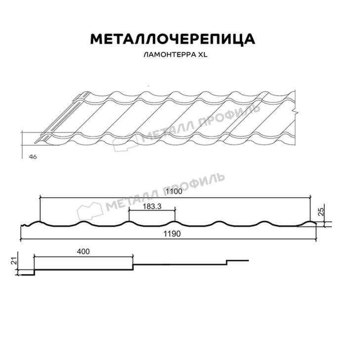 Металлочерепица Металл-Профиль Ламонтерра XL 0,5 PURMAN® RAL 9005 Черный темный