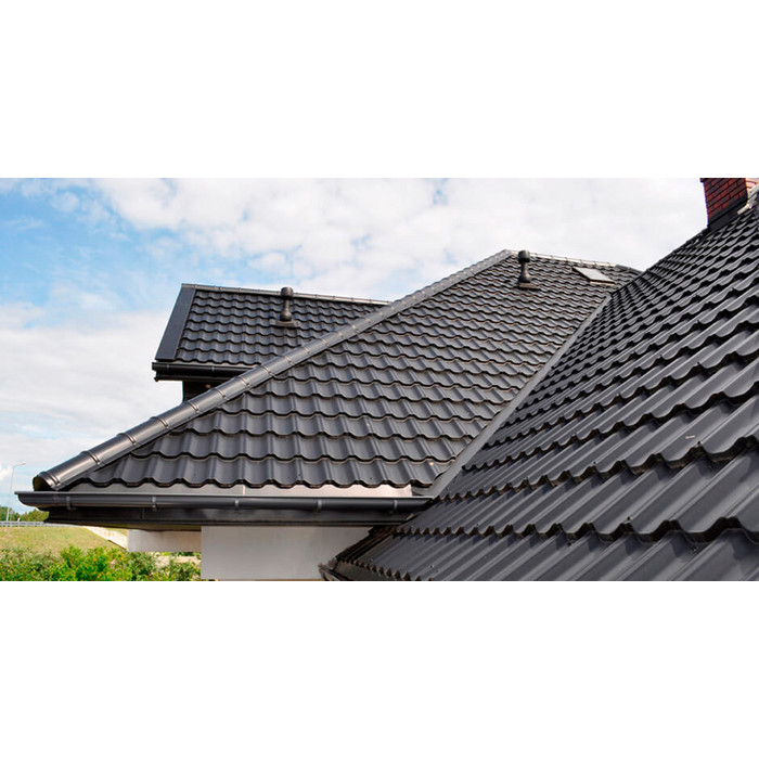 Металлочерепица Grand Line Kvinta plus (Квинта Плюс) 0,45 Полиэстер RAL 7024 Мокрый асфальт