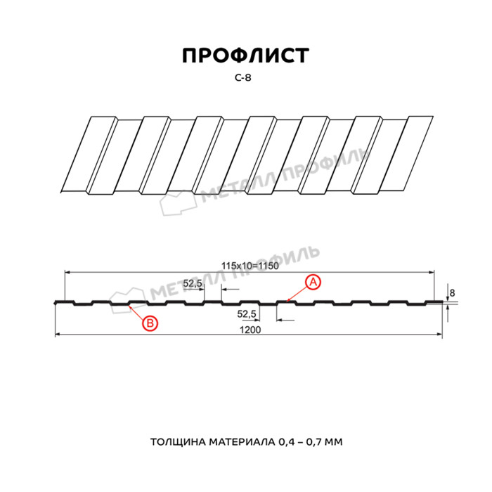 Профлист Металл Профиль С-8 0,65 Полиэстер RAL 8017 Коричневый шоколад | B